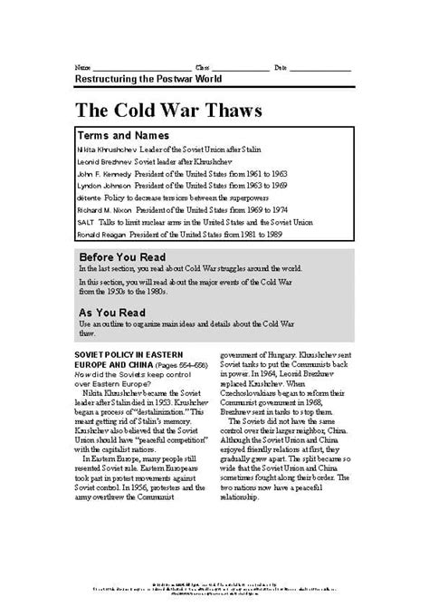 Download cold war thaws guided reading Reader online is a convenient and frugal way to read cold war thaws guided reading you love right from the comfort of your own home. Yes, there sites where you can get Reader "for free" but the ones listed below are clean from viruses and completely legal to use.